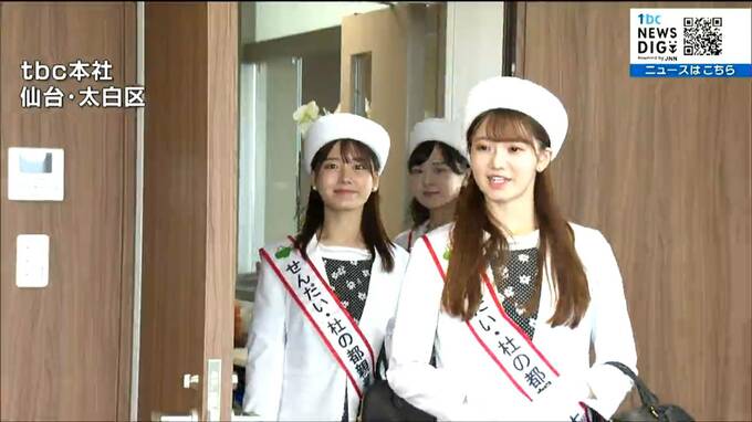 tbcを訪れたのは、せんだい・杜の都親善大使に任命された菊池桃子さん(26)、団体職員の八巻楓香さん(24)、東北医科薬科大学2年の中尾紗友里さん(21)です。