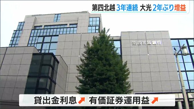 新潟県内の地銀2行の23年度の純利益は貸出金利息や有価証券運用益の増加などにより第四北越フィナンシャルグループが3年連続、大光銀行は2年ぶりに増益となりました。