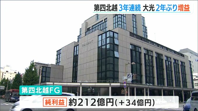 第四北越フィナンシャルグループの純利益はおよそ212億円で、前年度から34億円増え3年連続の増益になりました。