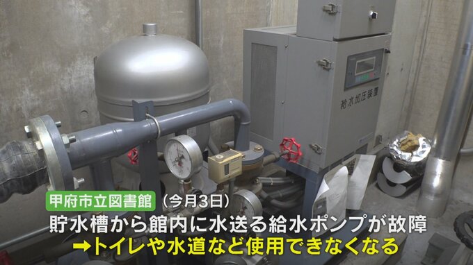 5月3日、貯水槽から館内に水を送る給水ポンプが故障し、トイレや水道などが使用できなくなりました。