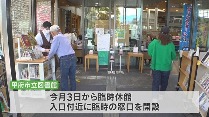 甲府市の市立図書館が5月3日から臨時休館となっています。