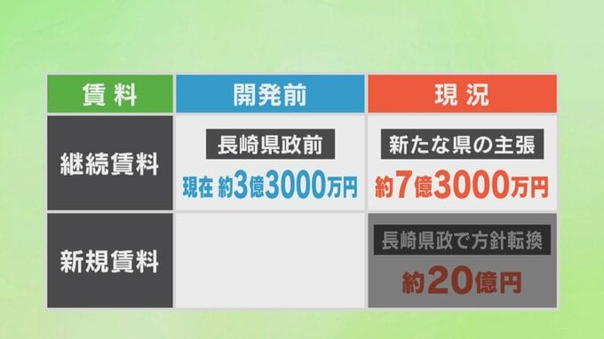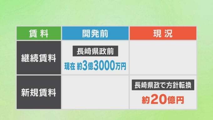長崎知事の就任前、県は大手不動産鑑定会社の鑑定結果として、開発前の土地をもとに、経済情勢などを踏まえた継続賃料で算定しました。