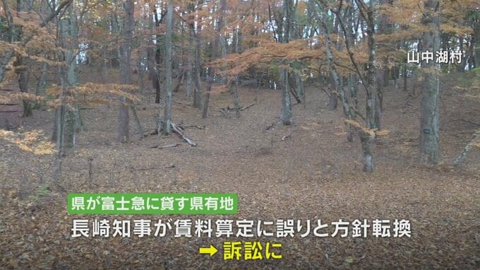 県が富士急行に貸す山中湖村の県有地をめぐっては、長崎幸太郎知事が過去の賃料の算定に誤りがあったと方針転換し訴訟となりました。