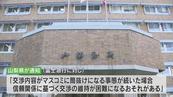 一方、県は富士急行に対し、「交渉内容がマスコミに筒抜けになる事態が続いた場合、信頼関係に基づく交渉の維持が困難になるおそれがある」と通知をしていたこともわかりました。