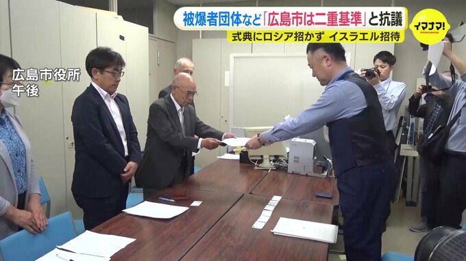 10日は県被団協や県原水協のメンバーが広島市役所を訪れました。そして「紛争の有無にかかわらず本来、全ての国を招待すべきで、広島市は『ダブルスタンダード』と批判されても仕方ない。早急に対応を改めるべき」だと訴えました。