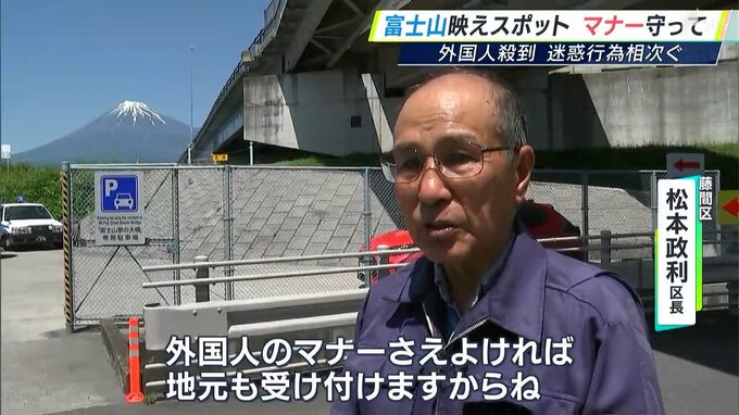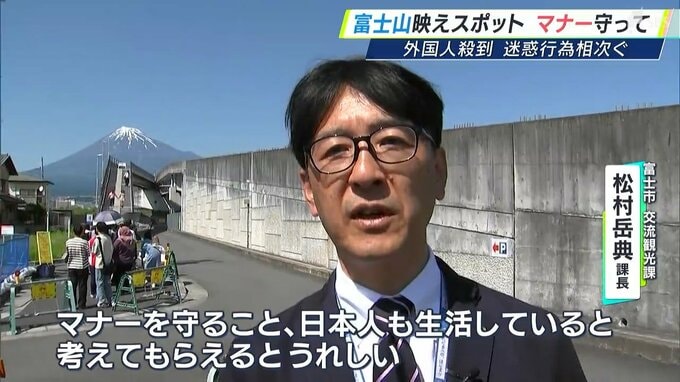 「観光施設ではないので、住民の方が困らないように一つ一つできることをやっています。ここに来て写真を撮ることをダメと言っているわけではなくて、富士市の素敵な場所を世界にPRしてくれるのはすごくありがたい。マナーを守ること、日本人も生活していると考えてもらうとうれしい」