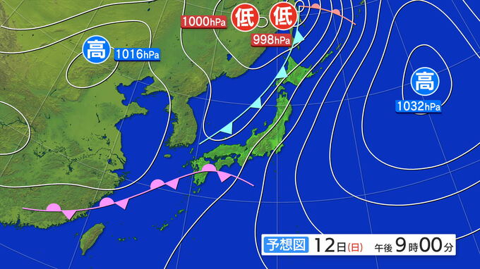 11日(土)は高気圧に覆われて全国的に晴れていますが、12日(日)は西から天気が下り坂。日本海から近づく寒冷前線や、九州・四国に伸びてくる別の前線の影響で、西日本は広く雨が降り、警報級の大雨となるおそれがあります。