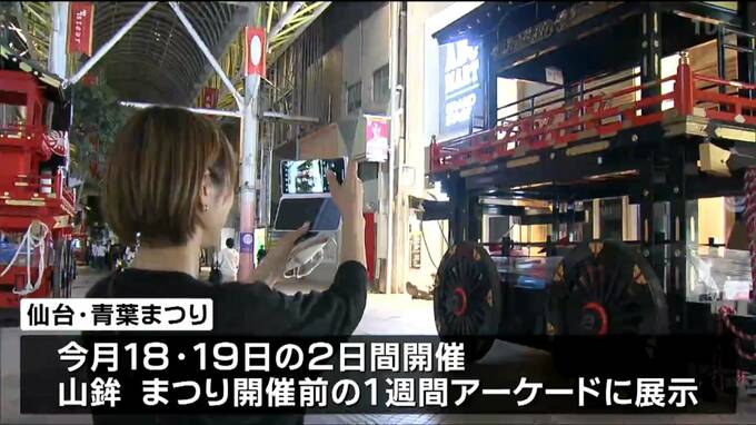 5月18日から開催される「仙台・青葉まつり」を前に、10日夜、仙台市中心部の商店街に祭りの目玉、山鉾が運び込まれました。