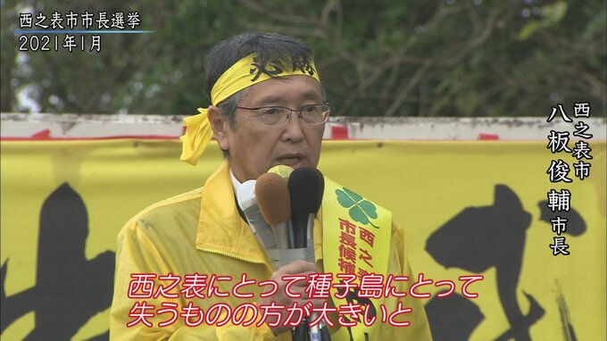 西之表市では3年前、馬毛島基地計画に反対を掲げた八板俊輔氏が市長に選出された。