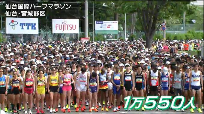 コロナ禍を経て1万人規模に戻った仙台国際ハーフマラソン。1万550人がエントリーし、12日午前10時過ぎ号砲を迎えました。弘進ゴムアスリートパーク仙台の東側から一斉にスタート。高橋尚子さん川内優輝さんがランナーを送り出しました。