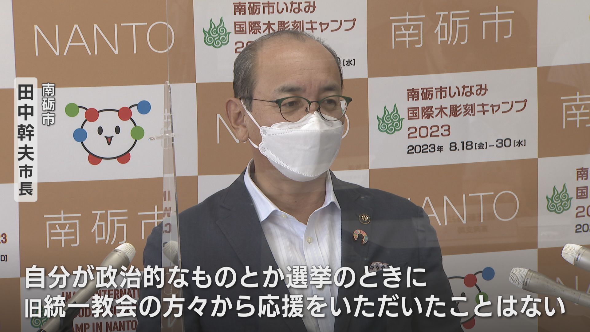 旧統一教会と富山県内の自治体トップとの関わりが明らかになっていますが、5日は新たに南砺市の田中幹夫市長が関連団体の自転車イベントの関係者と写真撮影に応じ、自らのツイッターに写真を投稿していたことがわかりました。選挙応援については否定しました。