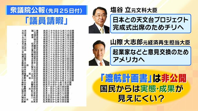 (大八木解説委員)「書いていないですね。国会議員の中で話し合う議会運営委員会というのがあり、そこには渡航の計画書が出されているのですが、一般には非公開なので知る由がないんです。そこが問題だなと思っています」