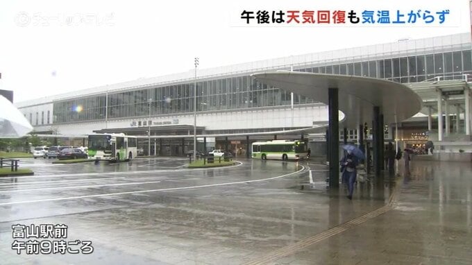 富山県内は、前線の影響で12日から広い範囲で雨が降っています。午後は次第に天気が回復しますが気温はあまり上がらない見込みです。