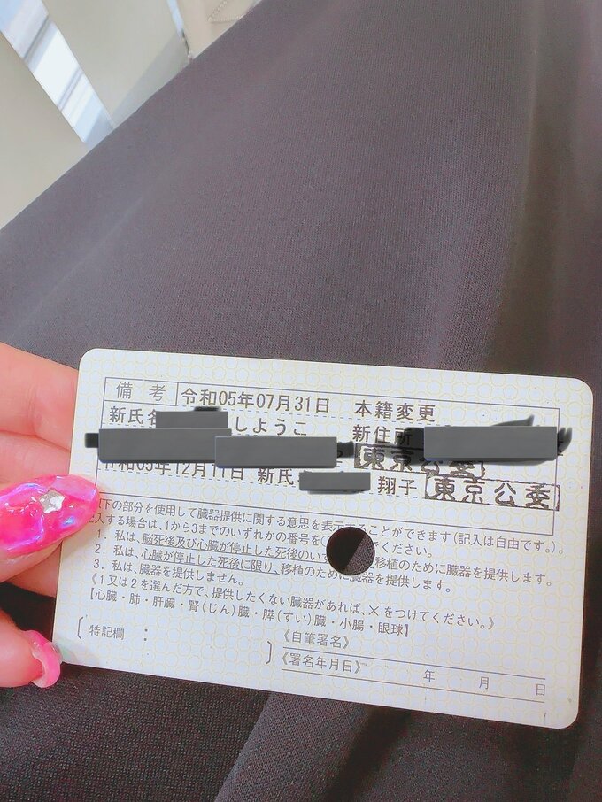 さらに、「裁判所でしようこを翔子に変えて、もはや中川しようこが一文字も残ってない〇〇翔子」と、免許証の「名前」の「表記の違い」について綴りました。