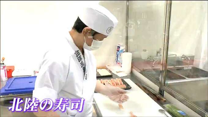 甘エビ、白エビ、ノドグロ、カニといった北陸地方の伝統的なネタを使った寿司を楽しむことができる弁当は職人が店内で一つ一つ握っています。