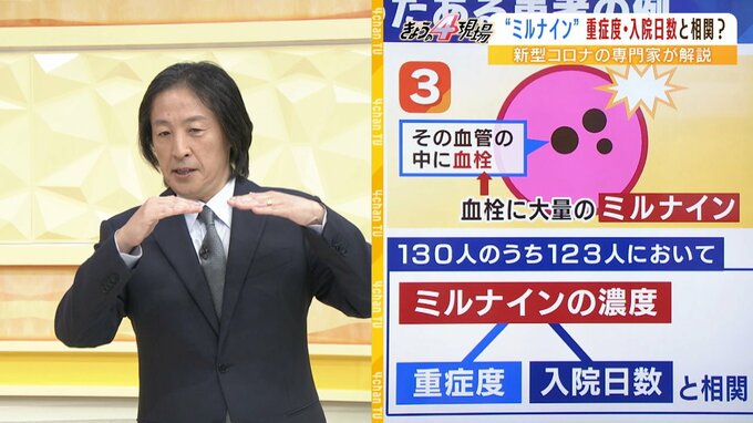 ーー130人のうち123人において「ミルナインの濃度が高いとコロナの重症度が高まり、入院日数が長くなる」そんなことまでわかったということですか?