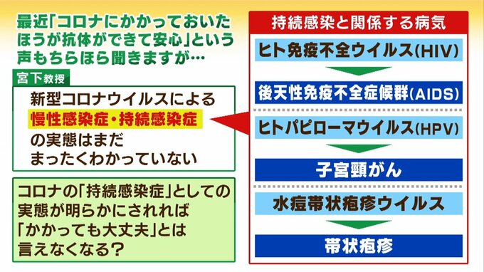 ーー新型コロナウイルスによるこの慢性感染症、持続感染症の実態がまだ全くわかっていないと、だからコロナの持続感染症としての実態が明らかになったら、かかっても大丈夫とは言えなくなる可能性があるということですね?