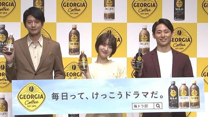 俳優の向井理さん、浜辺美波さん、プロバスケットボールの河村勇輝選手が、「ジョージア」キャンペーン発表会に登壇しました。