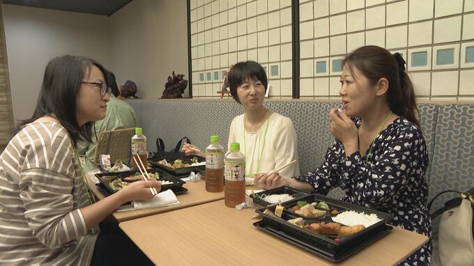 子どもを預けてゆっくりとお弁当ランチ。日頃の子育ての話題で話も弾みます。