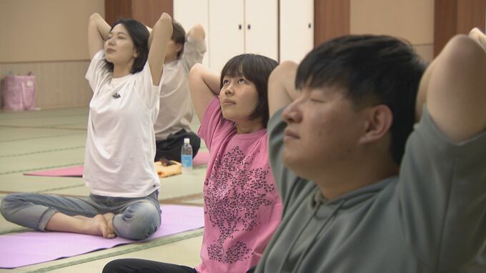 温泉の後にはヨガで身体を整え、子どものお迎えの時間に。