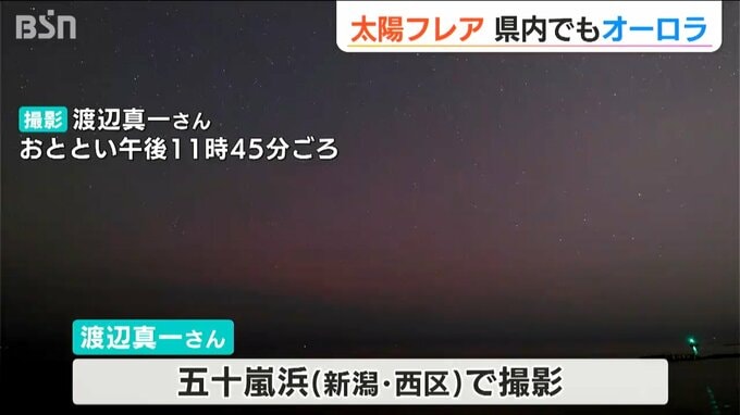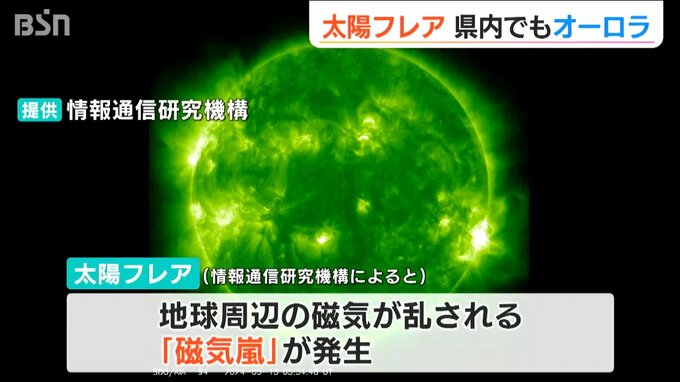 「太陽フレア」と呼ばれる太陽の表面で起きる爆発現象が観測され、新潟県内でもオーロラが確認されました。