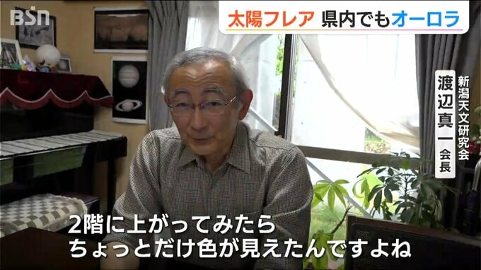 【新潟天文研究会 渡辺真一さん】「近所の人からメッセージがきて、もしかして今見えているのオーロラ?と言われたので2階に上がってみたら、ちょっとだけ色が見えたんです。海まで出掛けてちゃんとしたカメラで撮ったら確かに赤いものが写りました」