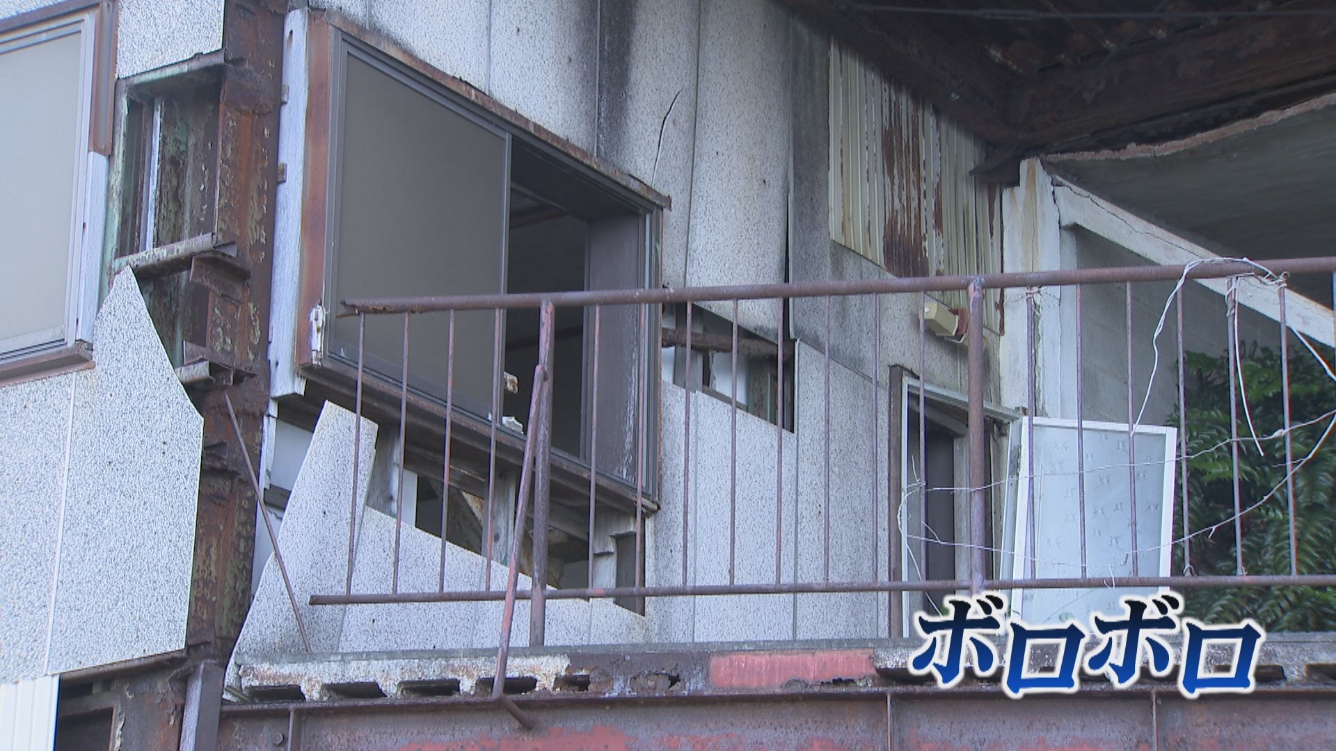 記者:「建物を見てみると、壁はところどころはがれていて、窓も割れています。そしてここから人が中に入ることができます」