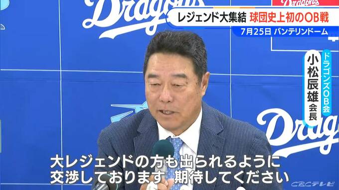 竜のレジェンドが熱戦。球団史上初のOB戦を開催です。(ドラゴンズOB会 小松辰雄会長)「大レジェンドの方も出られるように交渉しています。期待して下さい」(ドラゴンズOB会 山﨑武司副会長)「ドラゴンズの現役…