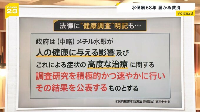 「政府は(中略)メチル水銀が人の健康に与える影響及びこれによる症状の高度な治療に関する調査研究を積極的かつ速やかに行い、その結果を公表するものとする」