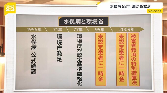 これまでの水俣病への国の対応を見ると向き合い方がわかります。今から70年近く前に水俣病が公式確認された後、環境庁が認定基準を厳しくするなどして裁判も続けて行われてきました。
