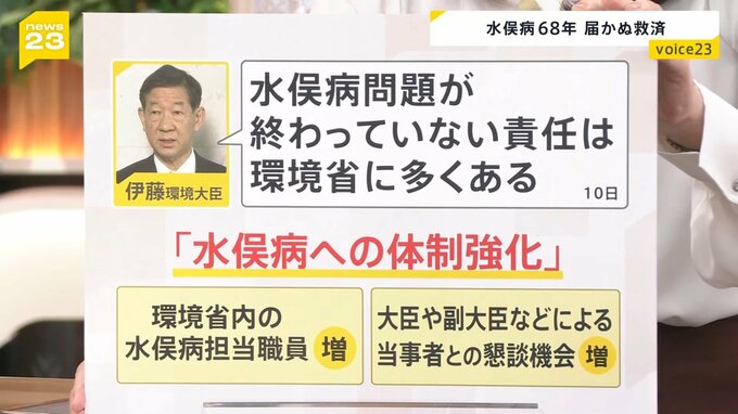 5月10日、伊藤環境大臣は「この問題が終わっていない責任は、環境省に多くある」として水俣病対応の体制を強化すると発言しましたが、これまで動かなかった状況が果たして変わるのでしょうか。