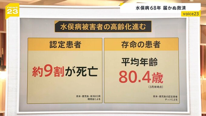 国として方針転換する時間には限りがあります。水俣病の認定患者の約9割の方は既に亡くなっていて、存命患者の平均年齢は80.4歳ということで、認定を待ち続けている方の高齢化も進んでいる状況があるわけですね。