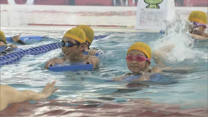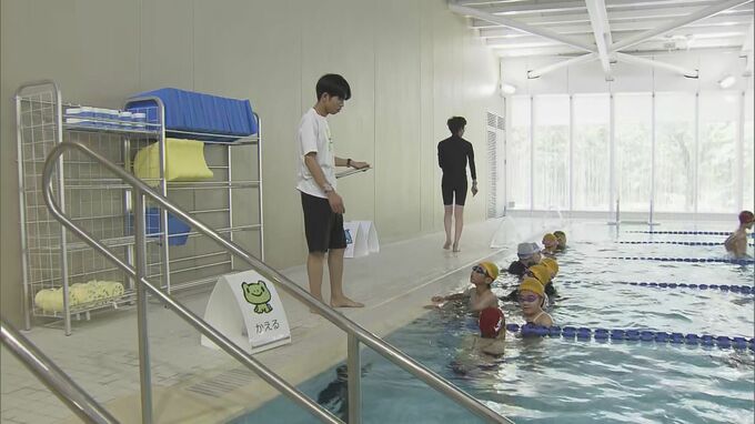 さらに市は、新プール稼働に合わせ、ことしから水泳の授業は民間に委託することに。教師はプールサイドからスポーツクラブのインストラクターの指導を見守りながら授業を組み立てます。