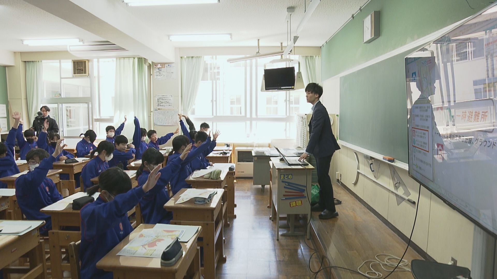 14日は災害時の命の守り方について考えてもらおうと、市の担当者が小坂中学校の1年生26人に、被災時の心構えやハザードマップの活用方法などを伝えました。