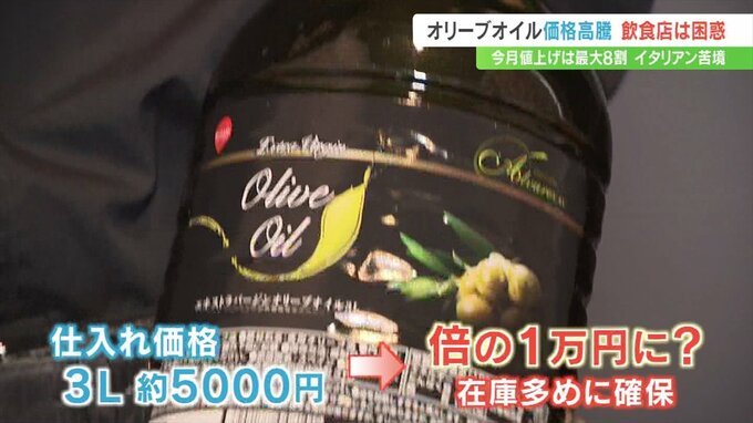 この店の仕入れ価格は現在3L約5000円ですが、今後は倍の1万円まで上がると見込んでいて、在庫を多めに抱えるなど対策を考えています。