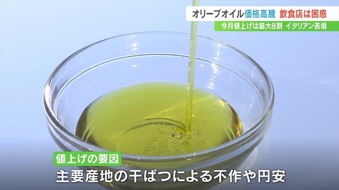 オリーブオイルは5月、メーカーによって最大で6割から8割値上がりしました。