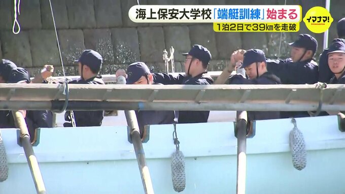 広島県呉市にある海上保安大学校の学生が14日、端艇(たんてい)を漕いで39キロを走破する1泊2日の訓練に出発しました。訓練に挑むのは、海上保安大学校に先月、入学したばかりの本科の学生64人です。この訓練は、…