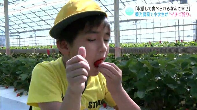 高知県南国市にある観光農園で、小学校の児童たちがイチゴ狩りの体験学習を行いました。子どもたちはイチゴ狩りを通じて農業の楽しさに気づいたようです。