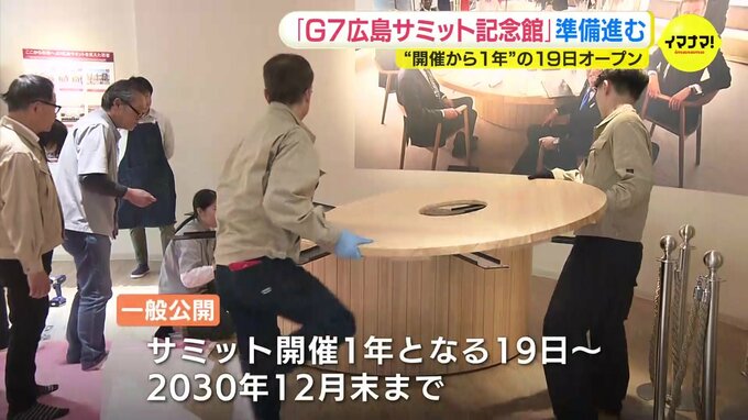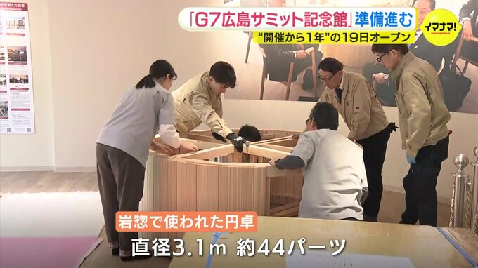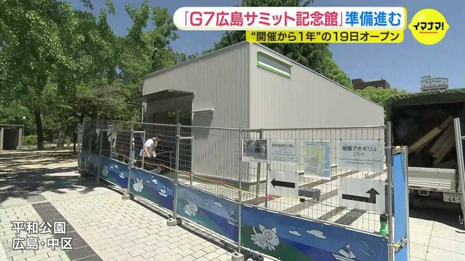 G7広島サミットの開催から1年となる今月19日のオープンに向け、サミット展示施設の準備が進んでいます。