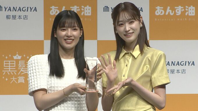 第2回で黒髪大賞に輝いた髙橋ひかるさんからトロフィーを受け取り、“生まれてから25年、ほとんど黒髪で過ごしてきて。グループ活動(E-girls)をしていたときは、周りが明るい髪色だったりすることが多かったんですけど、その中で黒髪を貫いてきて良かったな“と受賞を喜びました。