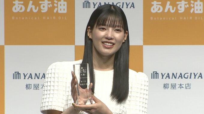 女優の石井杏奈さんが、「柳屋あんず油」Presents 第7回黒髪大賞を受賞し、表彰式に出席しました。