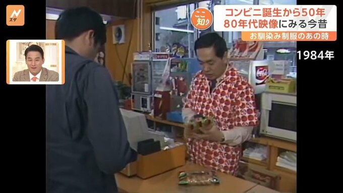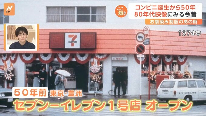 1974年、東京・豊洲にオープンしたセブン-イレブンの1号店。開店から10年後の1984年の映像が残っていました。当時の制服はアロハシャツのような、派手な制服です。