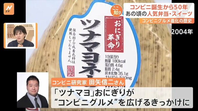コンビニ研究家の田矢さんによると、セブン-イレブンが発売した「ツナマヨ」おにぎりが“コンビニグルメ”を広げるきっかけになったということで、かなり画期的だったそうです。