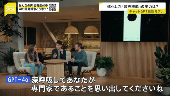 「オープンAI」が13日に発表した最新モデルの「GPT-4o(フォーオー)」。文字や画像などの処理速度が飛躍的に向上し、より“人間らしさ”に磨きがかかりました。このなかでも、特に進化したのが「音声機能」です。