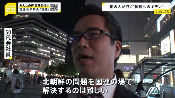 こうした争いを解決に向かわせることで期待されているのが国連のさまざまな機能なわけですが、街の皆さんは国連にどんな印象、どんな期待を持っているのでしょうか。