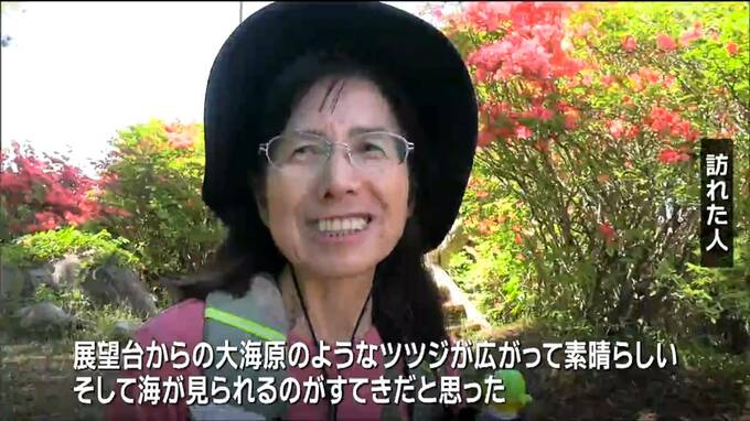 「展望台からの大海原のようなツツジが広がってすばらしい。そして海が見られるのがすばらしい」