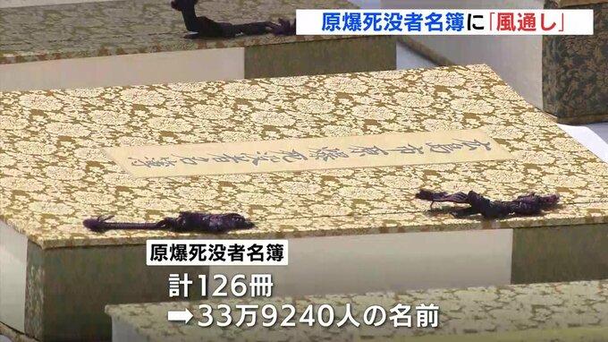原爆死没者名簿の風通しは、湿気を取り除くため毎年、梅雨入り前のこの時期に行われています。
