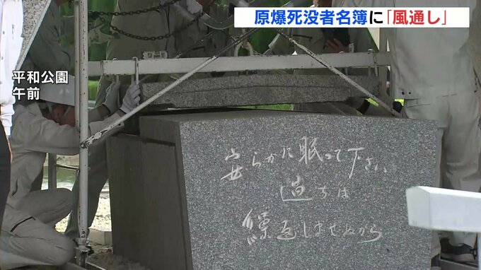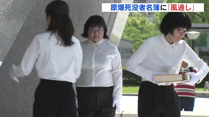 平和公園(広島市)の原爆慰霊碑に納められている死没者名簿の「風通し」が行われました。ことしは初めてインターネットでもライブ配信されました。