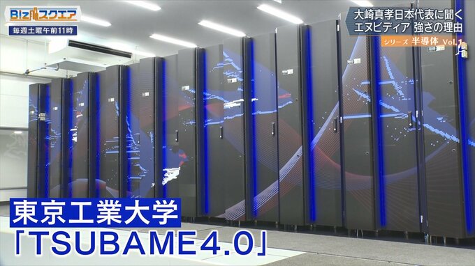 東京工業大学が手がけるスーパーコンピューターの「TSUBAME4.0」。1000基ほどのGPUを搭載し、国内のスパコンでは「富岳」に次ぐ2位の演算能力を誇る。エヌビディアのGPUが不可欠な理由を次のように話す。