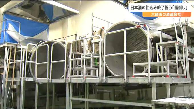 日本酒造りに使う酒米を蒸し終えたことに感謝する神事「甑倒(こしきたお)し」が15日、宮城県大崎市の酒造会社で行われました。